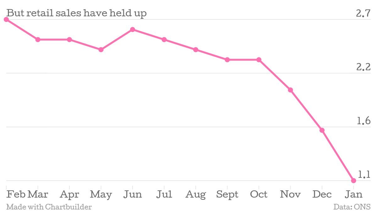"[They] dipped 0.3% month-on-month in January, but this was actually a relatively resilient performance after sales volumes had previously jumped 2.2% quarter-on-quarter in the fourth quarter of 2014."