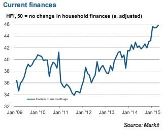 The Markit Household Finance Index climbed to 45.8 in April, up from 45.5 a month earlier.
