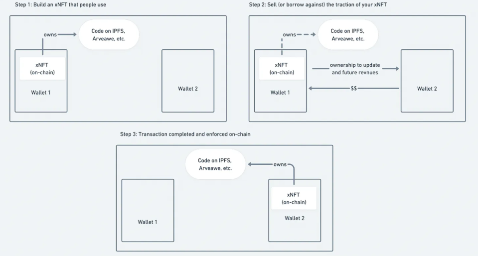 When a user opens an xNFT, its code is executed through a decentralized environment. This capability to run code within the NFT itself can prevent front-end censorship.