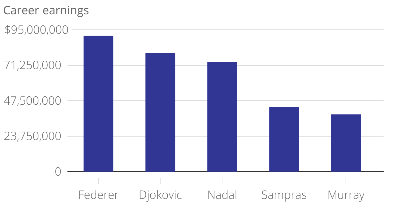 Not that he'll be feeling the pinch with total career earnings of $73.2m – the third highest ever behind Novak Djokovic ($79.4m) and Roger Federer ($90.9m).