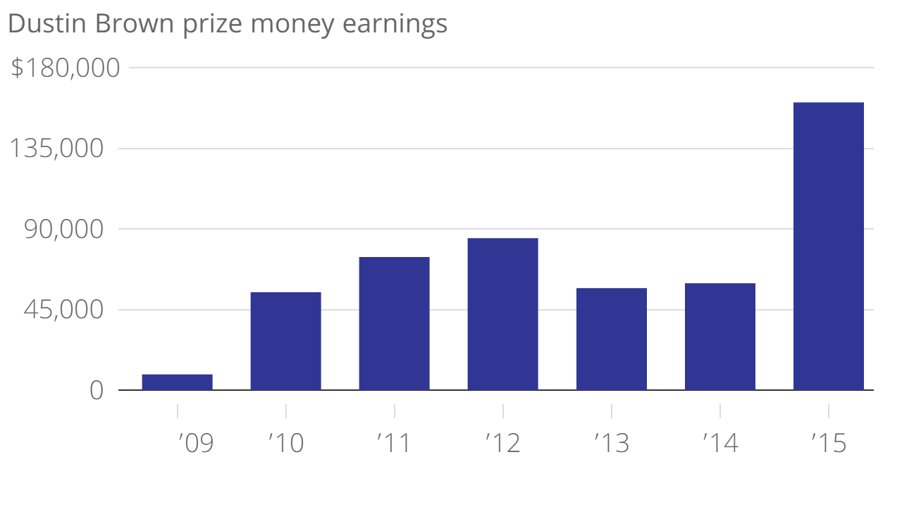 In fact, Brown's earnings from his two victories at this year's Wimbledon is bigger than any of his previous annual salaries.