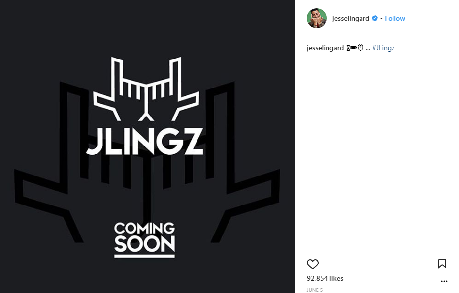 Lingard posted his new logo to social media days after filing it with the UK IPO (Source: Instagram.com/jesselingard)