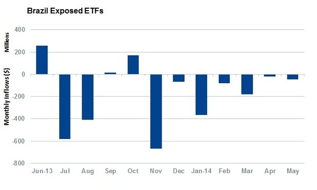 They say that investors have withdrawn from Brazil exposed funds for nine of the last 12 months, with one US listed ETF seeing almost $305m withdrawn.