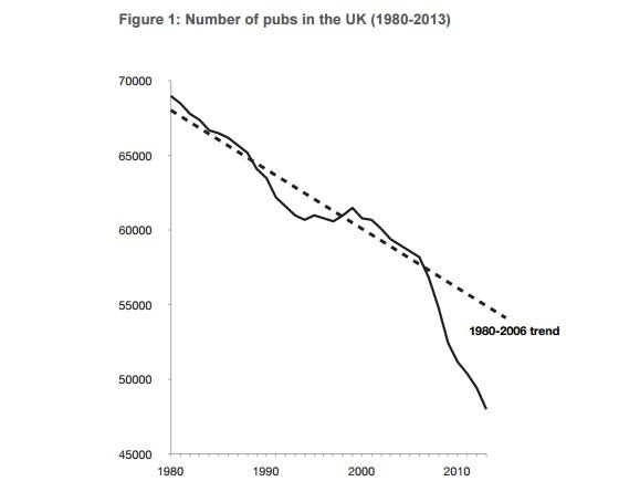 These are some of the factors which helped cause Britain to lose around 21,000 pubs since 1980, with half of the closures taking place since 2006 according to a report by the Adam Smith Institute.
