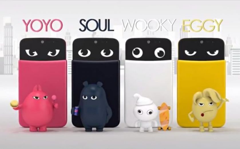 The names are nowhere near as weird as it gets. Each phone comes with a “personality” – for pink YoYo that’s a lady who eats too much (her weight yo-yos – geddit? Sigh), white Wooky “always speaks in slang”, navy Soul loves beer and music and yellow Eggy, despite his rather frowny appearance, is apparently always falling in love.